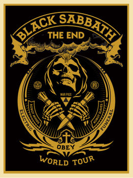 I’m very sad that Black Sabbath, one of the greatest bands of all time, is currently on their final tour ever. However, I was very happy when the band asked me to create a tee shirt and poster design for their “The End” tour. I got to see Sabbath with my wife and daughter Vivienne at the Forum in L.A. last week, as always, the band was amazing! I’ve seen Sabbath about a dozen times, and they’ve never been less than awesome. I’m glad my daughter was able to experience them. The Black Sabbath “The End” poster comes out next Tuesday in three different color ways, and this may be the last Obey/Black Sabbath collaboration, so pick up a print if you are a fan of either Black Sabbath or Obey, but ESPECIALLY if you are a fan of Black Sabbath AND Obey! If you are in L.A. don’t miss Black Sabbath at the Hollywood Bowl if you can get a ticket!