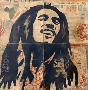 Bob Marley Stencil Collage on Album Covers Fine Art Piece