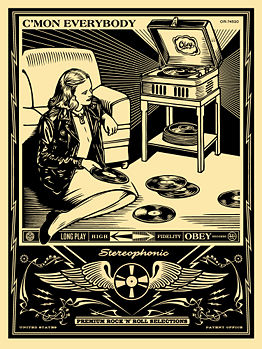 I love the way the past is reinterpreted in art and music to create something new. You see it done very creatively in hip-hop with disco, soul, rock, and funk samples. Through punk rock reinterpretations of older rock 'n' roll songs I discovered Chuck Berry, Eddie Cochran, Vince Taylor, Paul Revere and the Raiders, The Bobby Fuller Four, and early Who. The Sex Pistols with Sid Vicious on vocals covered two Eddie Cochran songs, Somethin' Else and C'mon Everybody which inspired this print. Sid's leather jacket and lock necklace can be seen in the image. Sid's version of C'mon Everybody is irreverent and raucous, but the original has a heap of rebellious swagger too. Check out the lyrics... innocent but defiant.