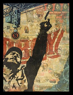Related Fine Art Pieces: Castro Collage HPM on Paper - Castro Collage Installation - Castro Retired Stencil