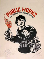DJ Shadow collaborated with Shepard Fairey on 2005's Public Works, described as a "DJ Shadow/Obey Reconstruction." Two Obey Giant posters were released in conjunction with that event, 2005's DJ Shadow and DJ Shadow Small.
