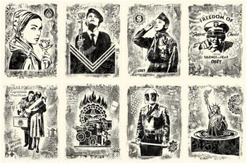 Damaged Stencil Series. 18 x 24 inches. Offsets on cream paper. Signed by Shepard Fairey. Numbered edition of 400. $160. Sold ONLY as a set. Available Tuesday, December 12 on ObeyGiant.com in Store under Prints. Limit 1 set per person/household.