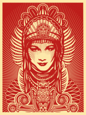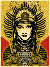 Democritus appeared on a now-obsolete 100 Greek Drachma note (1967). Shepard Fairey incorporated design elements from this note in his 2007 prints Peace Goddess, Peace Goddess Gold, and Peace Goddess Red.