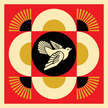 Dove Geometric Set. 18 x 18 inches. Screen prints on cream Speckletone Paper. Signed by Shepard Fairey. Numbered edition of 300. $100 per set. Available Tuesday, August 29 at 10AM (PDT) via store.obeygiant.com/products/dove-geometric-screen-print-set. LINK LIVE AT 10AM (PDT). Limit 1 set per person/household.