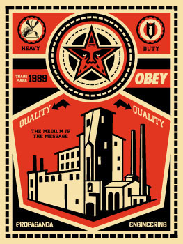 Production is the root of success of almost any movement of business entity. Without the ability to disseminate information or products, an organization or business is rendered powerless. Fortunately, access to mass production is almost universal these days. One way to guarantee freedom of the press is to own one (a press). The impact I have made with little money, using Xerox, screen-printing, and offset printing, should be encouraging to anyone who feels they can’t make an impact in the face of the mainstream media and their powerful corporate sponsors. Ingenuity can overcome a lack of cash. I’ve made 2.5 million stickers, 45 thousand posters, and thousands of spray paint stencils, by producing the stuff myself, bartering, or reinvesting money from posters sold. I know I’ve gotten more mileage from my money than any (Note: Text abruptly ends here, probably due to an editing error.)