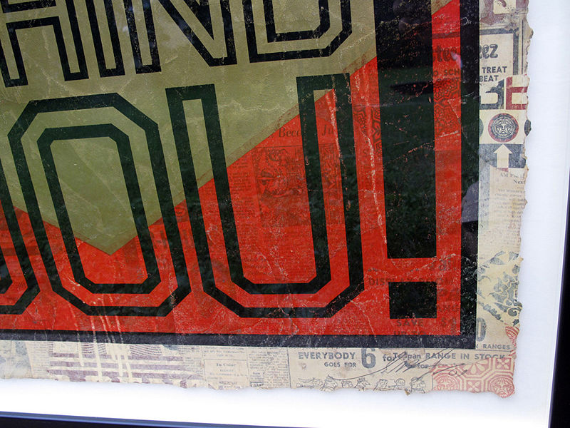 | current | 15:38, 11 August 2009 | 1,080 × 810 (417 KB) | Gpt104 (Talk | contribs) | Shepard Fairey, Behind You (from 20 Year Anniversary Retro Series), January 2009. Painted Multiple (HPM), Serigraph and Unique Mixed Media Hand-Collage on paper. 29 x 42 inches. HPM edition of 10. Studio chop lower left, signed lower right. |