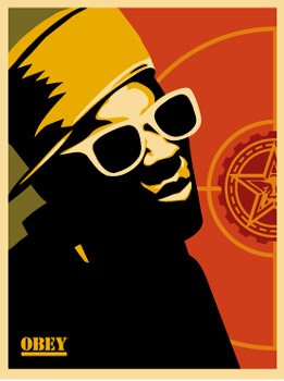 This print, though not part of a set, was recommended to be purchased along with "Chuck D Poster" because of the way they line up. It appears that there are two editions of this print: the standard run of 300 and a sub-run numbered out of 50. It has been reported that the 50-print run was sold at a gallery show and may have been created due to a color mismatch that occured during printing.