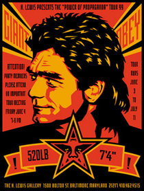 The cover to Fore! serves as the model for the image on Shepard's 1999 print Huey Lewis.