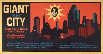 I made the Giant City print for Helen Stickler for a screening of the documentary she made about me. The print was designed to be placed in the storefront windows of some of Helen’s friends’ shops in New York City, and the postcard-sized images at the bottom were cut out and mailed as invitations to the screening. I was so poor at the time that I couldn’t afford to make real postcards, so I just combined the postcards and the posters onto the same sheet to save money.