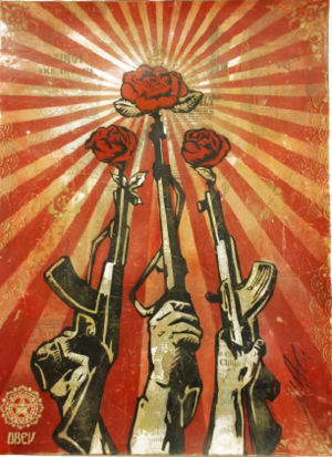 Related Fine Art Pieces: Guns and Roses HPM on Wood - Guns and Roses on Metal - Guns and Roses Retired Stencil