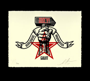 Hammer and Fist Letterpress on cream cotton paper with hand-deckled edges. 10 x 13 inches. Signed by Shepard Fairey. Numbered edition of 450. $65. Obey publishing chop in lower left corner. Available Tuesday, March 19 @ 10AM PST at store.obeygiant.com/collections/prints. Max order: 1 per customer/household. Multiple orders will be refunded. International customers are responsible for import fees due upon delivery.