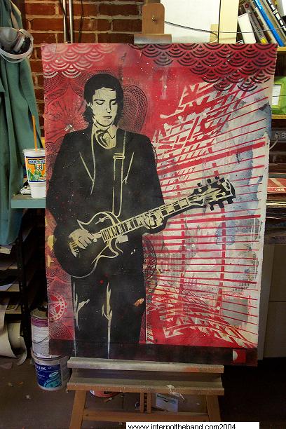 An indie rock band from New York City, whose members are Paul Banks, Carlos Dengler, Sam Fogarino, and Daniel Kessler. In 2004, Shepard worked with the band to create a set of prints for their then-upcoming album, Antics. The four prints, one of each band member, were sold at "Interpol Space" (see below) for $30 each or $100 for the set, and were limited to 500 of each. All prints were signed and numbered.