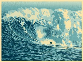 Shepard created this image to help raise awareness and some funds for the Surfrider Foundation. He also created a fine art version of the print that will be featured in the foundation’s Art for the Oceans III Auction on Oct 9th in Los Angeles. The print edition will go on sale tomorrow, 9/29 at a random time. Edition of 450, 24 x 18, S/N, $70 and limit 1 per person/household. Print was a collaboration with photographer Tom Servais and proceeds will go towards the charity. Buy one and support!