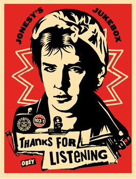 You know how big of a fan Shepard is of the Sex Pistols... well, they changed his life! Once again Shepard collaborated with Steve Jones to make a screen print of the Jonesy's Jukebox Radio Show Logo, which Shepard created along with the Indie 103 logo. Its a big honor for Shepard to work with Steve and he is happy to show his appreciation. The Jonesy's Jukebox print is signed by both Shepard and Steve Jones, Ed of 300.