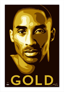 Kobe Bryant fans, here is your opportunity to own specially commissioned artwork featuring the Los Angeles Lakers star guard, created exclusively for Upper Deck by Shepard Fairey, one of today's most prominent and influential artists. Noted for creative street art campaigns and iconic pieces of work - his Barack Obama posters were in extremely high demand during the junior senator's run for the 2008 Democratic presidential nomination - Shepard Fairey continues to make bold statements through his art. Celebrate Kobe's gold-medal-winning experience at the 2008 Summer Games with this 20" wide x 30" high unframed 'GOLD' edition signed by Shepard. Produced on French archival paper, the litho is a special gold adaptation of the previously released 'KOBE' and 'MVP' productions. Shepard's signature is guaranteed authentic through Upper Deck Authenticated's patented five-step process. Like other Shepard Fairey art productions, this rare, iconic litho isn't expected to last long. Order now!