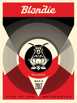I’ve been a Blondie fan since I was nine-years-old and I’ve always admired their courage to play music in styles ranging from punk to reggae, to hip-hop, to pop. I’ve collaborated with Debbie Harry and Chris Stein on a couple of projects, but I was incredibly honored to be asked to design the newest Blondie album package for their album Pollinator, which by the way, is excellent. As an additional art component to the actual album package, I also did the tour posters for a few legs of their tour in support of the album. I have 150 of each print signed and numbered for sale on my website ObeyGiant.com, and these are the only signed and numbered prints that will be available. Be sure to listen to Pollinator if you haven’t already! – Shepard