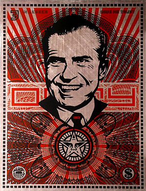Related Fine Art Pieces: Nixon Poster on Wood - Nixon Retired Stencil on Album Cover