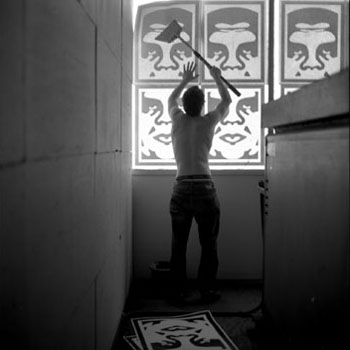 To help get his message and explanation out, he advertises in youth-oriented publications like skateboard and music magazines. Fairey shrewdly follows the evolution of Pop culture. The 15- to 25-year-olds are setting the aesthetic trends in contemporary culture. They might not be ready for fine art, but they are the ones who are defining what is cool visually.
