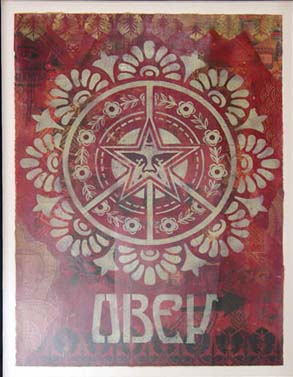 Obey Medallion Stencil Collage on Paper Fine Art Piece