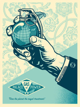 18 inches by 24 inches. Screen print on cream Speckle Tone paper. Edition of 300. Signed by Shepard Fairey. A portion of the proceeds will be donated to 350.org. $55 each. Limit 1 per person/household. Available Thursday, June 9 at 10AM PST on ObeyGiant.com in Store under Prints.