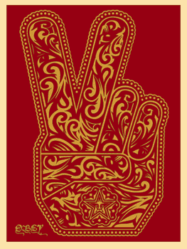 This variant version of the Peace Fingers print was sent out as a holiday gift to friends and business partners of Obey Giant in 2006.