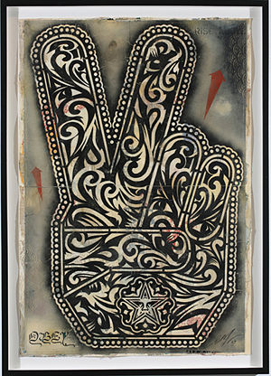 Related Fine Art Pieces: Peace Fingers on Metal - Peace Fingers Stencil Collage on Paper