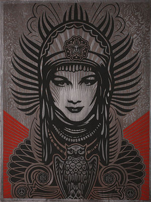 Related Fine Art Pieces: Peace Goddess Canvas Unique - Peace Goddess HPM on Wood - Peace Goddess Mural Canvas - Peace Goddess on Wood - Large - Peace Goddess Rubylith - Peace Goddess Stencil Collage on Paper