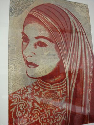 Related Fine Art Pieces: Peace Woman Canvas Unique - Peace Woman Stencil Collage on Paper