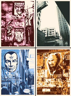 This set of four mini-prints was originally available exclusively with the Wooster Collective special edition Post No Bills book, together for around $80. Later on, the set was available alone from Obey Giant's website for $40. It has been stated that the copies sold on the website differ slightly in color.