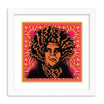 "I became a fan of Hendrix after I exited my punk rock orthodoxy phase. I ended up gravitating towards John's image because it had that nod to psychedelia, without going so overboard in the baroque detail, that it remained iconic. This Hendrix image itself — along with a few other influences, like Barbara Kruger and Russian Constructivism — was a huge influence in how I was going to make work that had the ability to cut through the clutter of what's on the street and still have a recognizable style. When I was just making variations of the Andre on the different backgrounds, I was looking at a lot of psychedelic work, but John's piece really inspired me to make something that was a deviation from just playing it safe with the original Andre image. So John's Pinnacle Hendrix was sort of a gateway to the evolution of my entire Andre The Giant project. I can't really understate the importance of this image for me." - Shepard Fairey
