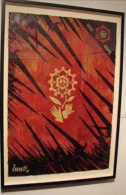 Pictures from the Shepard Fairey gallery show Rise Above: