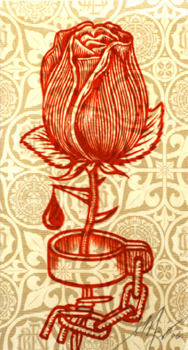 Related Fine Art Pieces: Rose Shackle HPM on Wood - Rose Shackle on Metal - Rose Shackle on Wood - Rose Shackle Stencil Collage