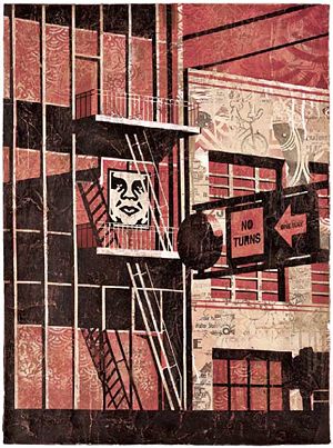 SF Fire Escape Stencil Collage on Paper Fine Art Piece