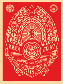 Related Fine Art Pieces: Dalek and Shepard Fairey - Supply and Demand Red - Supply and Demand Red on Metal
