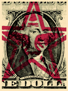 In September of 2003, a gallery showing titled This Is Your God was held at sixspace. The gallery sent out 800 dollar bills stamped with the Obey star. They were sent out randomly to people on the sixspace mailing list, along with invites to the opening.