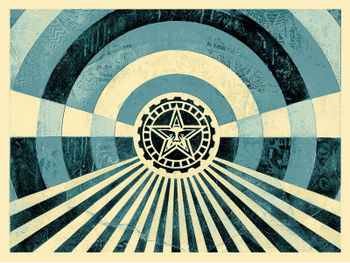 Tunnel Vision (Gold). 18 x 24 inches. Screen print on cream Speckletone paper. Signed by Shepard Fairey. Numbered edition of 400. $45 per print. $90 per set. Available Tuesday, March 6 between 10 and 11AM (PST) and 5 and 6PM (PST)on ObeyGiant.com. Limit 1 per person/household.