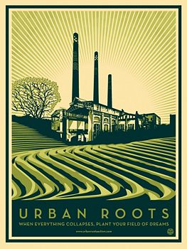Urban Roots and it’s action to put farms in schools is getting a big push from Shepard Fairey who has generously created a poster to support the action and will donate proceeds from his artwork. OBEY Clothing will also sell a T-Shirt of Fairey’s Urban Roots image in which 100% of profits will go to putting farms in schools. Urban Roots, Tree Media’s next documentary, is a timely, moving and inspiring film about the emergence of urban farmers in the most unlikely of places, in downtown Detroit. Produced by Leila Conners (The 11th Hour) and Mathew Schmid and directed by Detroit-native Mark MacInnis, the film shows the vibrant local economy of farming that has united people from all walks of life, all ages and races, who have come together to create community based on healing the soil, growing and eating healthy food. Urban Roots goes beyond film; it is also a call to action, as a portion of proceeds goes to putting farms in schools through the Tree Media Foundation. By pulling out asphalt and putting in farms, children will experience the growth cycle of seed to harvest to table and take the message home that growing your own food is a simple and vital process. To join the movement, plant your field of dreams and help others do so too, please go to: