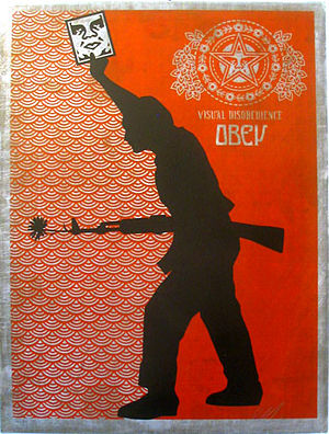 Related Fine Art Pieces: Obey '04 HPM on Paper - Visual Disobedience Retired Stencil - Visual Disobedience Stencil Collage on Paper