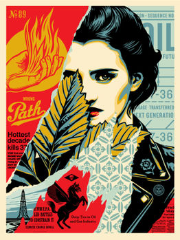 Wrong Path. 18 x 24 inches. Screen print on cream Speckletone paper. Signed by Shepard Fairey. Numbered edition of 450. $55. Available Tuesday, December 5 at 10AM (PST) on ObeyGiant.com in Store under Prints. Limit 1 per person/household. A portion of the proceeds with benefit NRDC.